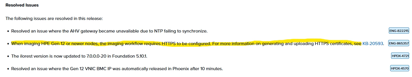 Imaging requires Foundation HTTPS to be enabled on port 8001 for nodes that require HTTPS boot media.