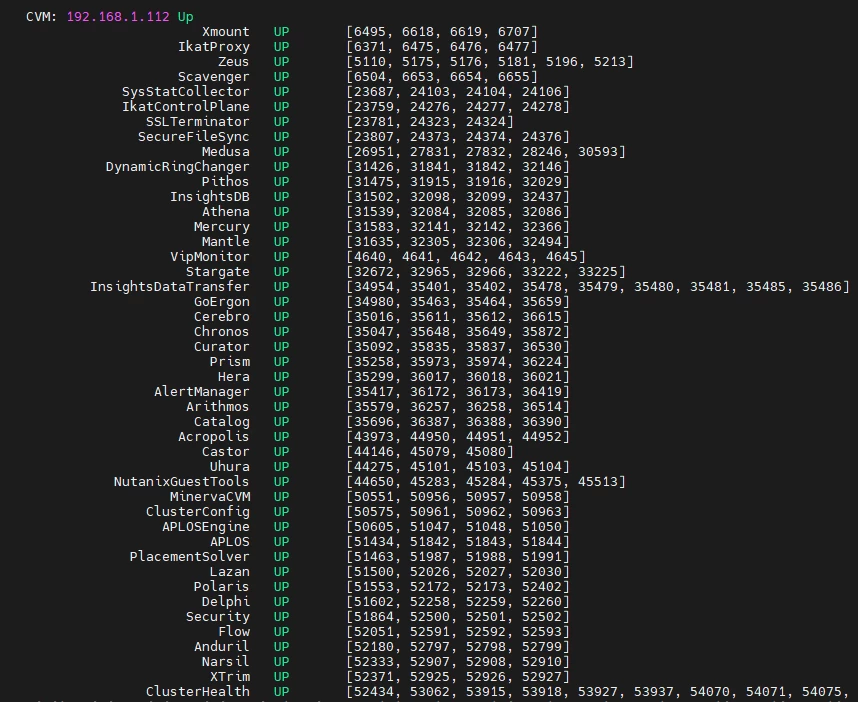 What i run cluster status from CVM 192.168.1.112, i see that all services is UP