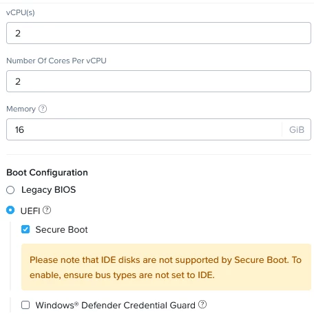Configure the VM's firmware to use UEFI with Secure Boot enabled.