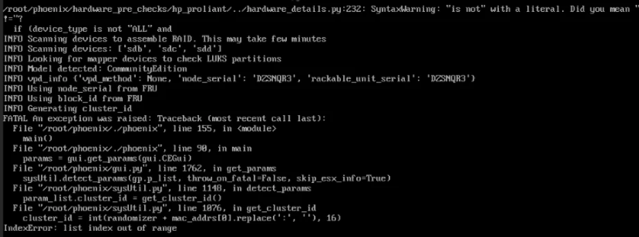 I have 3 servers as nodes for Nutanix CE. On the 1st and 3rd node the installation was successful.