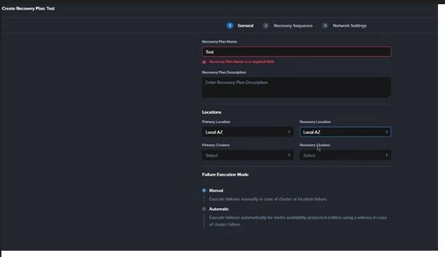 Currently, while creating the recovery plan, I can select individual VMs, but I do not see an option to select at the cluster level. Is this expected behavior when using two PCVMs, and how can we properly configure a recovery plan in this setup?