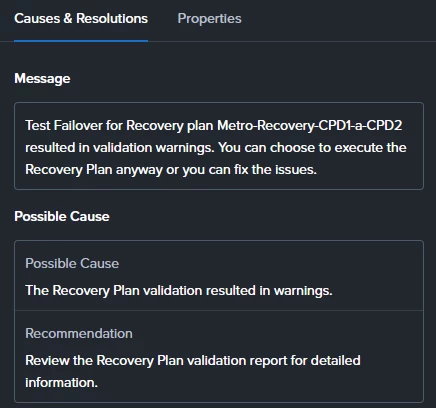 Since recovery points are visible on both sides, I’m unsure why the Recovery Plan cannot locate them during the test execution.