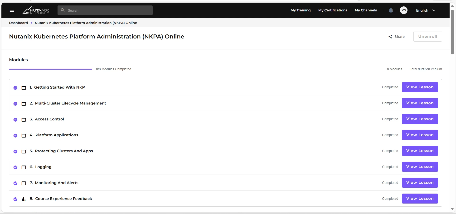 Unable to access Nutanix Kubernetes Platform administration course